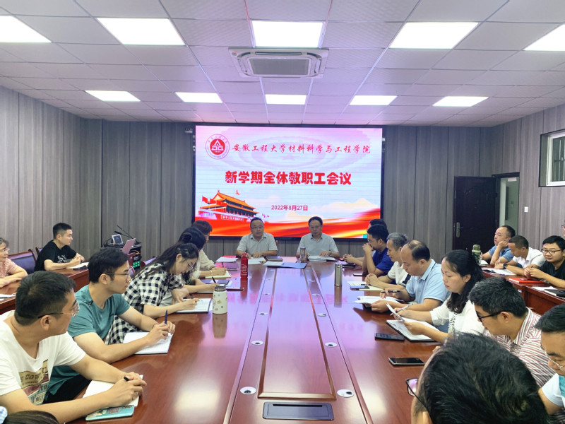 8月27日上午,材料科学与工程学院在B座216会议室召开新学期全体教职工会议。院党委书记郭广春主持会议,学院党政班子成员分别总结部署重点工作。科技处副处长王刚、现代技术中心(工程训练)中心副主任冒国兵等应邀参会并就产学研等相关工作政策进行指导。
