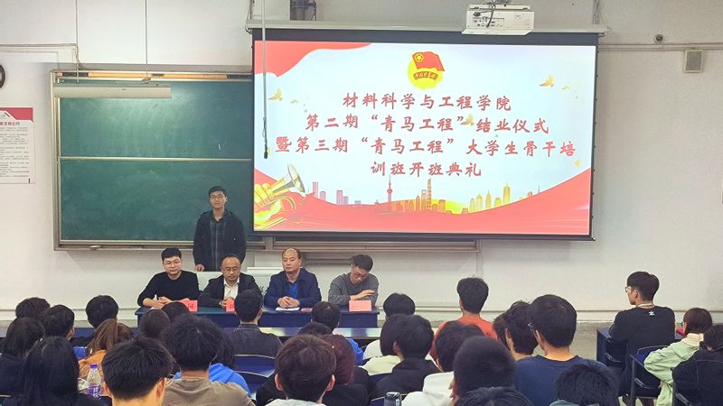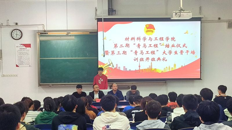 仪式在庄严的国歌声中拉开序幕。与会领导老师为第二期“青马工程”培训班的优秀学员颁发证书;班主任田园宣读了《材料科学与工程学院第三期“青马工程”大学生骨干培训班学员管理及考核办法》,并介绍培训班培养内容、日程安排等。