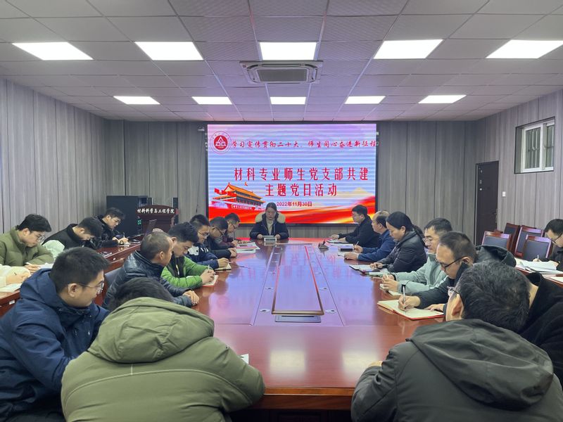 为深入学习宣传贯彻党的二十大精神,11月30日下午,材料科学与工程学院材科系教师党支部和材科专业学生党支部在B座216开展结对共建主题党日活动。党支部全体师生党员参加,材科专业学生党支部书记田园主持活动。
