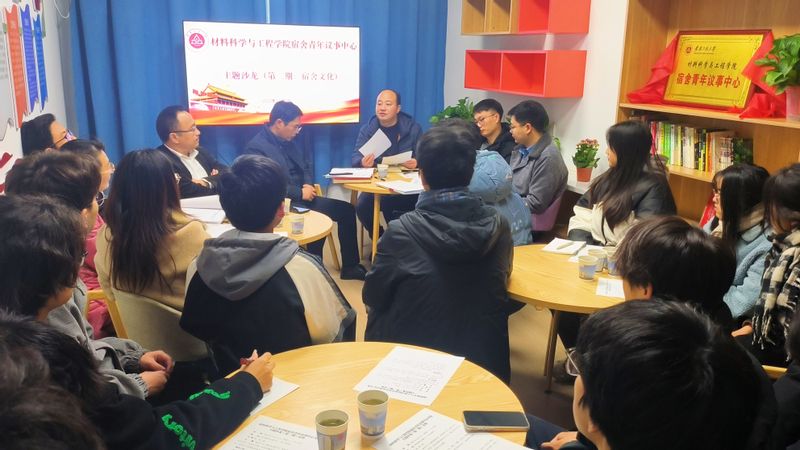 “宿舍文化”主题沙龙结束后,与会的同学既感到自豪,也充满期待与感慨,认为这是学校真正关心爱护学生的好措施。材控223桂鑫泉说,通过本次活动感受到了青年议事中心的包容性和行动力。相比较字面上对青年议事中心作用的了解,更加直观的让我意识到青年议事中心责任重大,作为中心成员将做好本职工作,努力为全院师生办实事。材控221郑梦雨说,今天参与主题沙龙感觉收获挺大,以后应该让更多的同学参与进来,感觉领导们也不是很高冷,好亲近,在材料学院挺好的!接下来,青年议事中心将安排周一至周五进行值班,依托学院教师资源,围绕“正”起来组织开展社区宿舍党建团建主题学习活动、围绕“学”起来组织博士面对面活动、围绕“壮”起来组织开展体能训练营、围绕“勤”起来组织开展劳动先锋示范营、围绕“乐”起来组织开展艺能提升营,通过系列活动不断丰富议事中心的功能和内涵!