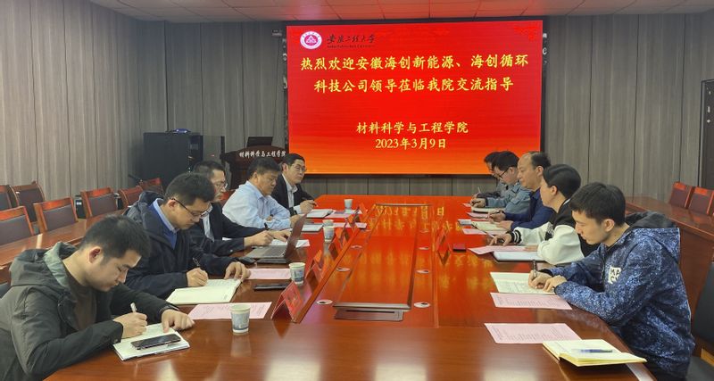 3月9日下午,安徽海创新能源材料有限公司张洪常副总经理、孟浩南技术总监、王瑞廷总经理助理,安徽海创循环科技有限公司余永教副总经理、生产技术部部长李洋等一行来我院洽谈交流合作事宜。双方在B座216会议室举行了产学研对接会,材料科学与工程学院党委副书记方玖胜主持会议,副院长刘琪教授,以及新能源方向的青年博士教师参加了会议。