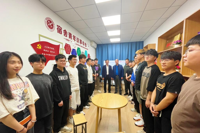 接着同学们与嘉宾积极互动,说说心里话,例如“该如何选择自己的就业方向,自己到底要不要考研?”“学校招聘会上企业第三方协议不合理的问题。”“学校与学院检查寝室卫生的标准不一致。”“学院中有同学身兼多职忙不过来。”现场黄炜与各位学生代表亲切交谈,对同学们所遇到的困难进行一一解答,采纳与会代表对学校所提的意见建议,高度肯定了学院探索建设宿舍青年议事中心的典型经验做法。
