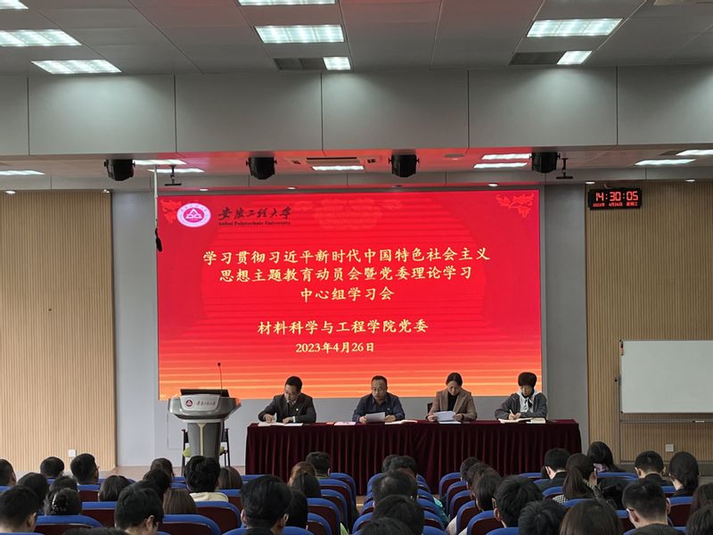 4月26日,材料科学与工程学院党委学习贯彻习近平新时代中国特色社会主义思想主题教育动员部署会暨理论学习中心组学习扩大会议在5教117教室召开。学院党委委员、理论学习中心组成员、学院全体师生党员出席会议,会议由院党委书记郭广春主持。