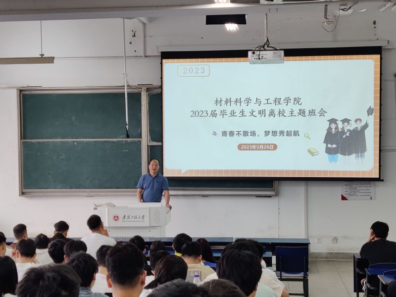 为营造健康、文明、有序、和谐的毕业生离校氛围,增强毕业生爱校荣校情怀,5月26日下午,材料科学与工程学院在5J217举办2023届本科毕业生文明离校主题班会。学院党委副书记方玖胜出席会议并讲话,全体毕业生参加此次文明离校主题班会,会议由毕业班辅导员周冬梅主持。