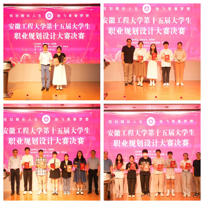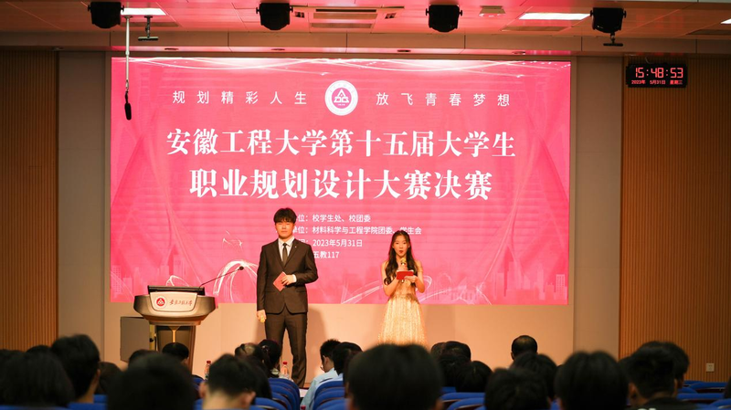 为深入贯彻落实学校党委“三抓”和“三全六专”育人实践的部署要求,进一步提升我校大学生职业生涯规划能力。5月31日,我校在5教117报告厅举办了校第十五届大学生职业生涯规划大赛(决赛)。安徽师范大学招就处处长聂全高、皖南医学院学生处处长张建英、奇瑞汽车股份有限公司人力资源部高级经理李峰、校党委研究生工作部部长王勇智、经管学院教师王介石担任评委。校党委常委、副校长郑健,校学生处负责人、材料学院分管负责人作为嘉宾与100余名师生代表共同观看了比赛。