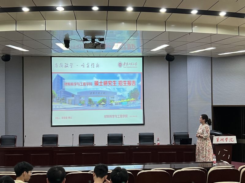 接着蒋雪雯介绍了我校材料科学与工程学院2024年硕士生招生计划、学院科研团队、科研成果、科研平台、硕士点设置、奖学金设置等基本情况,并对往年研究生招生简章、报考条件、研究生就业等内容进行了详细解读。