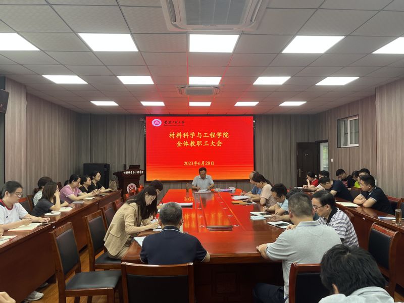 6月28日下午,材料科学与工程学院在B216会议室召开全体教职工会议,部署强调暑期重点工作,组织开展学习贯彻习近平新时代中国特色社会主义思想主题教育。