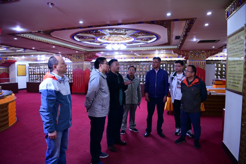 在方江平陪同下,郑健一行参观了西藏大学校史馆、藏文典藏室。