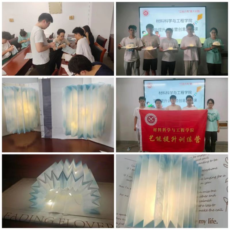 本次活动是材料科学与工程学院艺能提升训练营的第六次专题课程,是贯彻落实“三全六专”育人实践活动的具体行动。同学们在亲手实操和体验中,增强了创新意识,提升了实践动手能力,更在心中播下了审美的种子,让大家在“乐”起来的同时,享受到了创意手工的魅力,提升了审美能力。