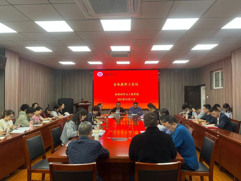 10月11日下午,材料科学与工程学院在B座216会议室组织召开全体教职工会议,落实“第一议题”制度、部署强调2023年度职称评审工作、开展师德师风警示教育、总结部署国家自然科学基金申报工作。