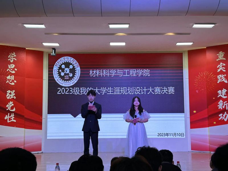 为进一步落实“三全六专”育人实践,做深做实新生入学教育,帮助2023级新生迅速完成角色转变、更好地认知大学、有效进行自我管理,为大学生涯、职业生涯、人生成长打好基础,11月10日晚,材料科学与工程学院在学术报告厅举办2023年新生大学生涯规划设计大赛决赛。校团委副书记王康、校团委学生兼职副书记校研究生会主席张松、院团委书记陶冶等7位老师担任此次决赛评委。学院党委副书记方玖胜和全体2023级新生观看了比赛。