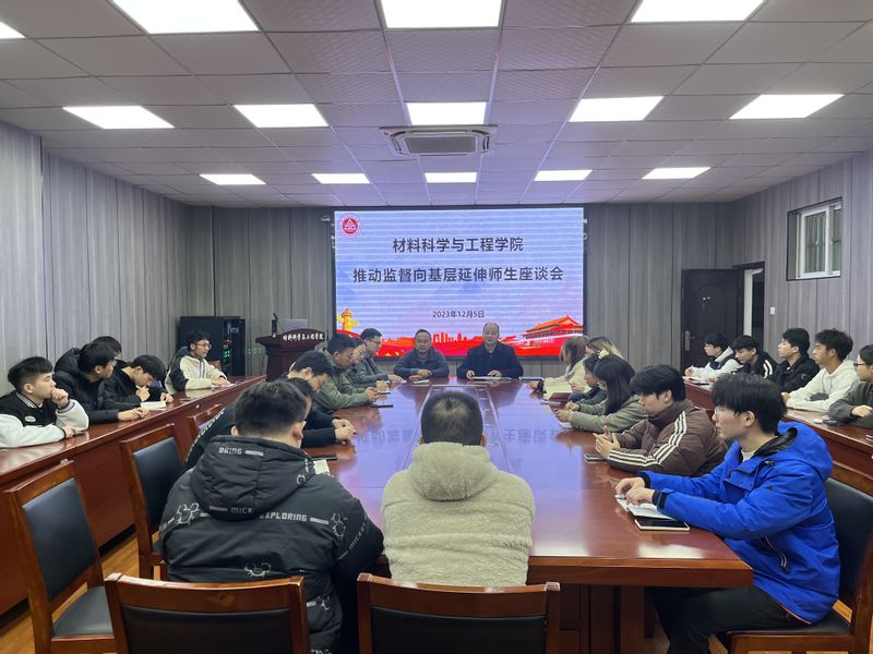 为强化党风党纪和师德师风监督,织密监督网络,推动监督下沉延伸,12月5日晚,材料科学与工程学院纪委组织师生代表召开推动监督向基层延伸座谈会。校纪委办主任、院党委书记郭广春,学院纪委委员、各党支部纪检委员、各班级思政委员以及辅导员参加会议。座谈会由院党委副书记、纪委书记方玖胜主持。
