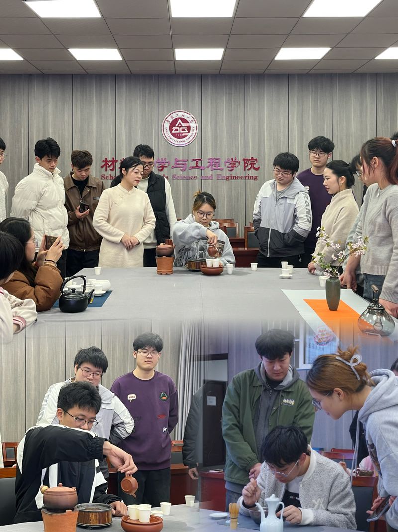 本次茶艺体验课,吴欣荧从茶的种类、特性、制作工艺、冲泡技巧等方面为大家讲解茶文化基本知识;依托赏茶、闻茶、沏茶、饮茶等环节展示中国茶道之礼;通过绿茶、红茶、乌龙茶、宋代点茶等技艺,展示中国茶文化的博大精深。在特色茶艺体验课上,师生兴趣盎然,主动参与动手体验,感受中华优秀传统文化的内涵,进一步增强文化自信。为庆祝“三八”国际妇女节,本次特色茶艺体验课还专门邀请材料科学与工程学院全体女教职工参与其中,与大学生们一同习茶、知茶、品茶。