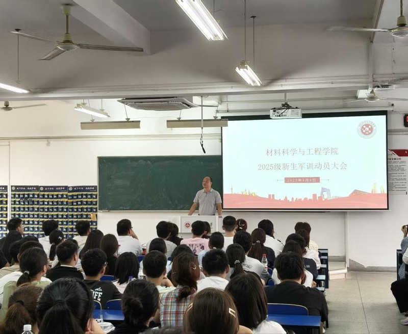 9月8日上午,材料科学与工程学院在6J212召开2025级新生军训动员大会。学院党委副书记方玖胜出席,全体2025级新生参加。会议由新生班级辅导员王景芳主持。