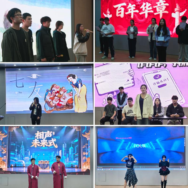 大赛在合唱《仰望星空》中拉开帷幕,同学们用清澈的嗓音唱出了对未来的憧憬;慷慨激昂的朗诵《百年华章》以饱满的情感抒发了新时代青年的爱国情怀;相声《学生时代》用幽默诙谐的语言再现了校园生活的点点滴滴;独唱《神女劈观》以独特的戏腔展现了传统文化的魅力;小品《诈诈诈,我诈你》通过生动表演警示防范诈骗,寓教于乐,让整个会场充满喜悦与欢快的氛围。