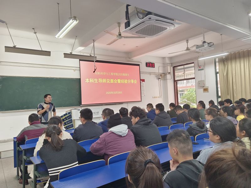 10月29日,材料科学与工程学院2025级本科生导师见面会暨优秀导师经验分享会在6J112教室召开。常务副院长王刚、副院长陶锋、全体2025级本科生及本科生导师参加会议。
