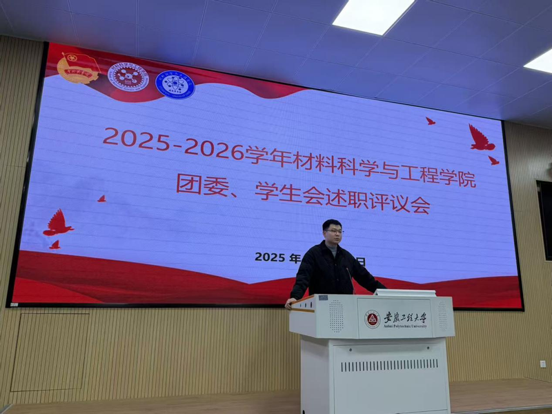 为深入落实高校学生会深化改革部署要求,全面复盘2025-2026学年第一学期团学工作成效,锤炼学生骨干的责任担当、提升服务效能,持续推进团学组织规范化、制度化建设,12月18日晚,材料科学与工程学院成功召开团委、学生会述职评议会。团委书记田园出席会议并讲话,全体辅导员、第五届团委及学生会主席团成员、各部门负责人、各班级班长、团支书及学生代表参加会议。会议由团委学生兼职副书记王诺主持。