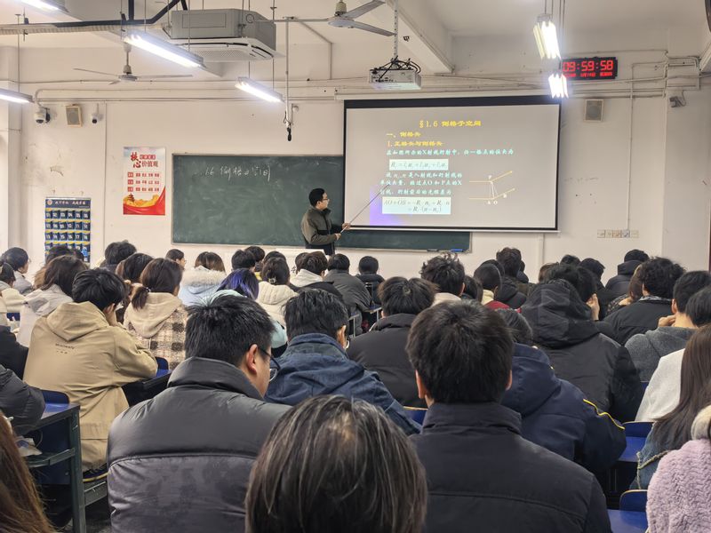 本次示范课面向新能源材料24级学生,讲授“倒格子空间”章节。何朋老师围绕倒格矢、正格矢与倒格矢的相互关系等核心知识点,以深入浅出的方式展开教学。课堂设计独具匠心,教学环节环环相扣,通过提问引导学生回顾旧知,巧妙设置问题链,不断将抽象概念具象化呈现。何朋老师时常走近学生身边近距离交流和个性化指导,有效提升了学生的课堂专注力与参与度。整堂课气氛活跃、互动频繁,学生思维始终紧跟教师节奏,充分展现了以学生为中心的教学理念。