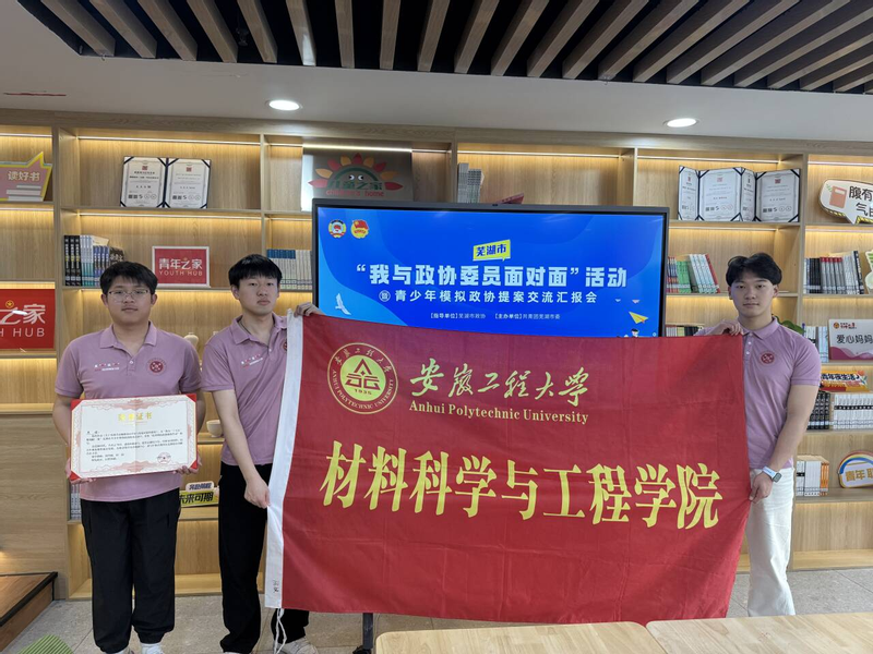 3月25日下午,由芜湖市政协指导、共青团芜湖市委主办的芜湖市“我与政协委员面对面”活动暨青少年模拟政协提案交流汇报会,在镜湖区赭山中路宜邻中心顺利举办。我校材料科学与工程学院王诺、赖嘉兴、周亚文、陈信任、刘旨龙五名学子表现优异,其精心打磨的提案作品《关于芜湖书房赋能效应评估与发展对策的提案》,从百余件参赛作品中脱颖而出,成功斩获优秀提案奖项。