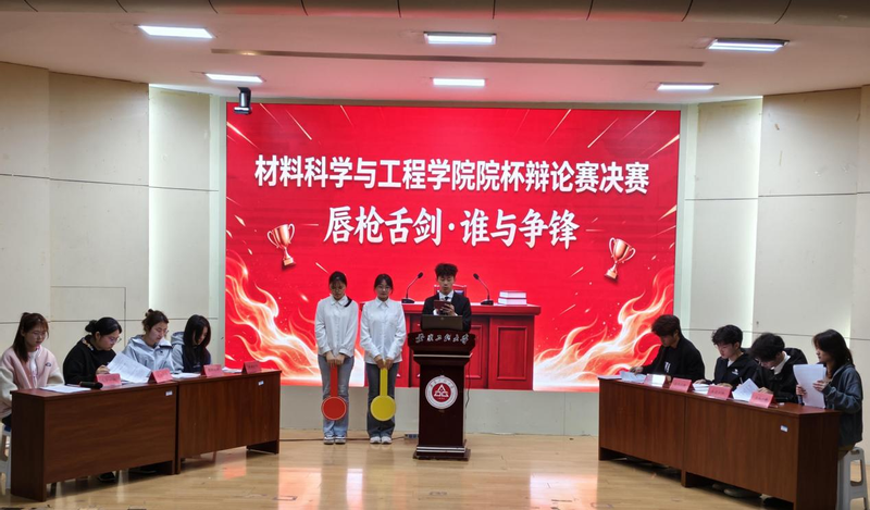 立论环节双方观点鲜明、逻辑严谨;攻辩环节辩手沉着引经据典,尽显思辨风采;自由辩论阶段你来我往、妙语连珠,场面精彩;总结陈词环节重申立场、升华主题。整场比赛氛围热烈,辩手们展现出扎实的知识储备与良好协作能力,彰显了材料学子的思辨风貌。